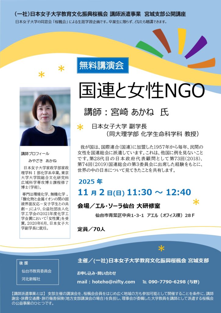 ◆講 師 :日本女子大学副学長(理学部 化学生命科学科 教授) 宮崎あかね氏