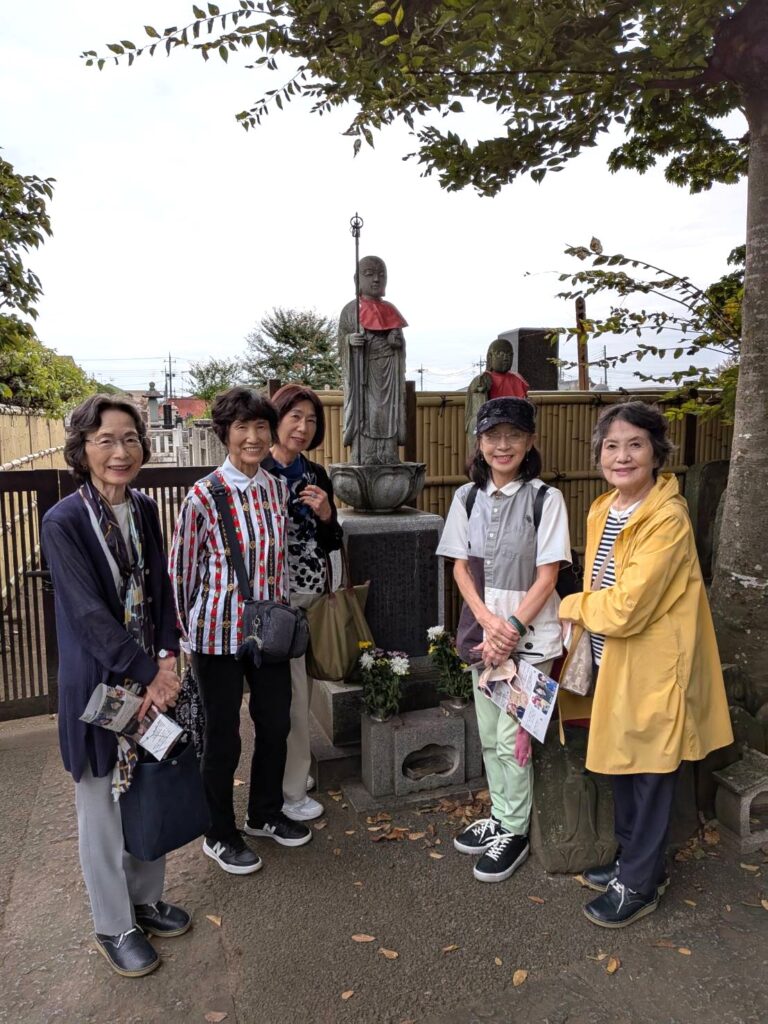 10月9日8時半 北支部は19名で栃木県へのバスハイクを開始した。車内で小川支部長から正田淑さんの紹介があった時、驚きと早くおめにかかりたい期待が参加者内に膨らむ。正田淑さんの地蔵像は正田家の菩提寺であった惣宗寺(佐野厄除け太師)にあった。同敷地内には足尾銅山鉱毒事件において、銅山操業停止を天皇に直訴した政治家田中正造の碑もある。