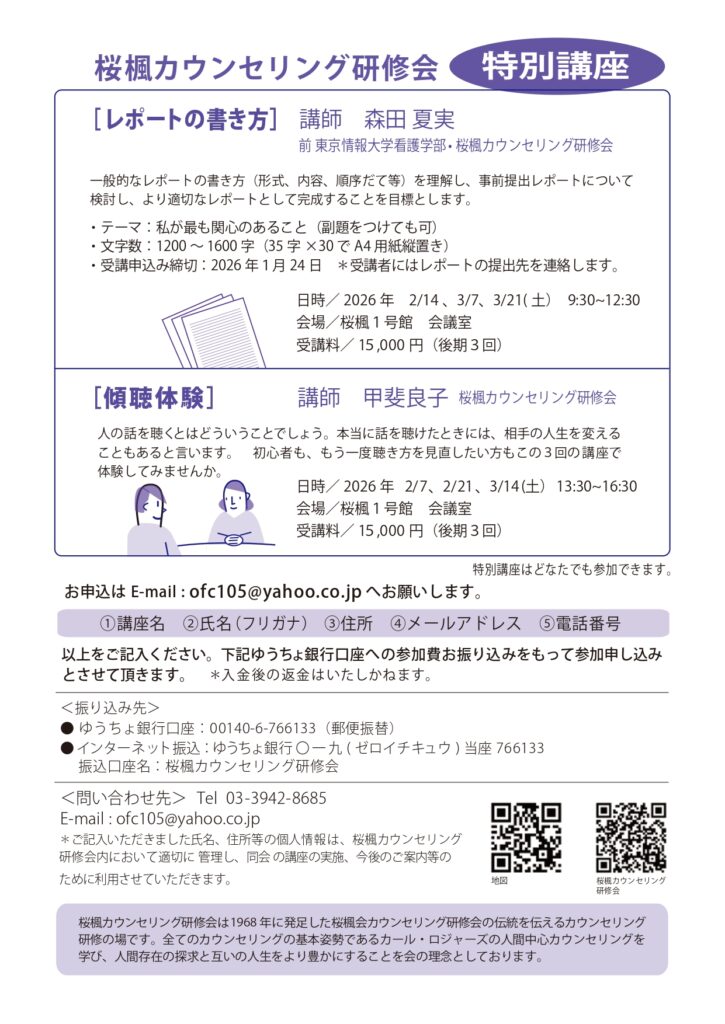 桜楓カウンセリング研修会 特別講座 2026年2・3月