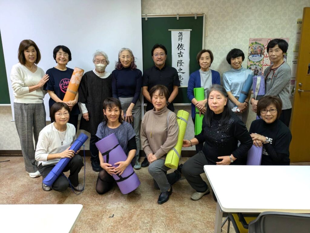 講師とこまめにメール連絡して宣伝用チラシを作成した。参加者は手持ちのマットを持参できること、大半が50歳~80歳代後半という現状をお伝えして講演に活かしていただいた。