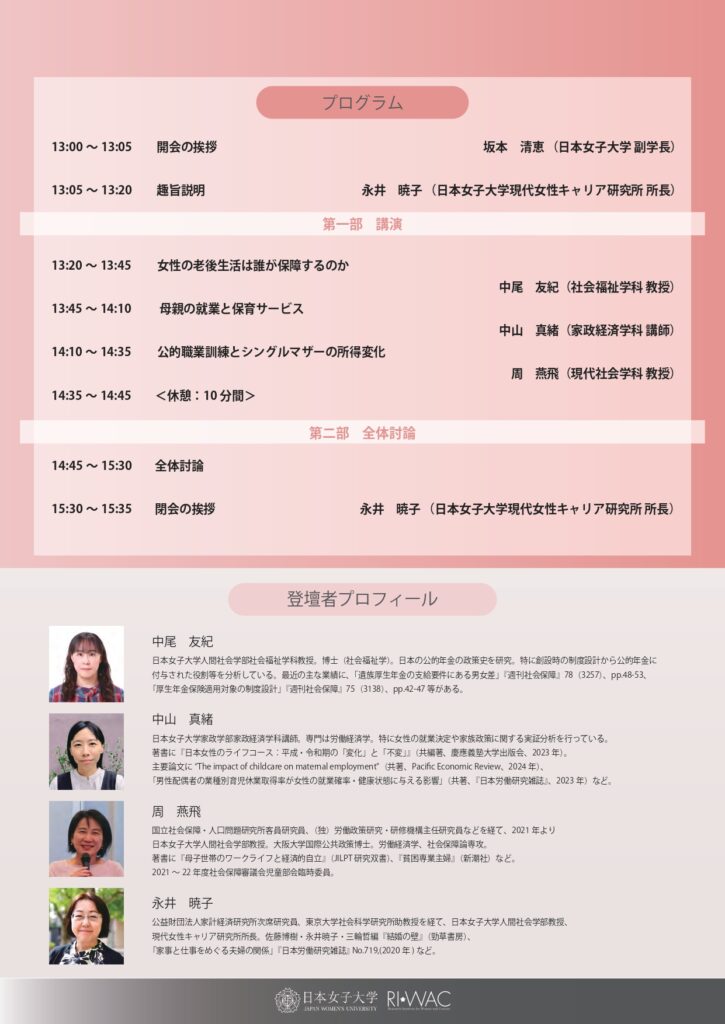 13:20-13:45   「女性の老後生活は誰が保障するのか」