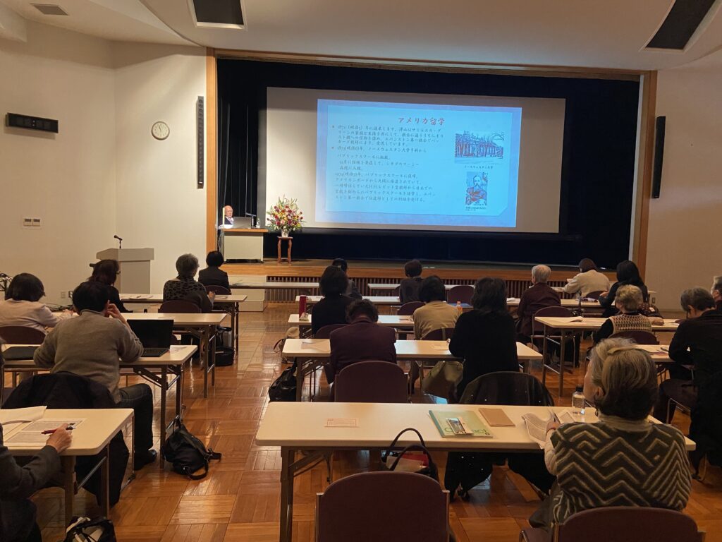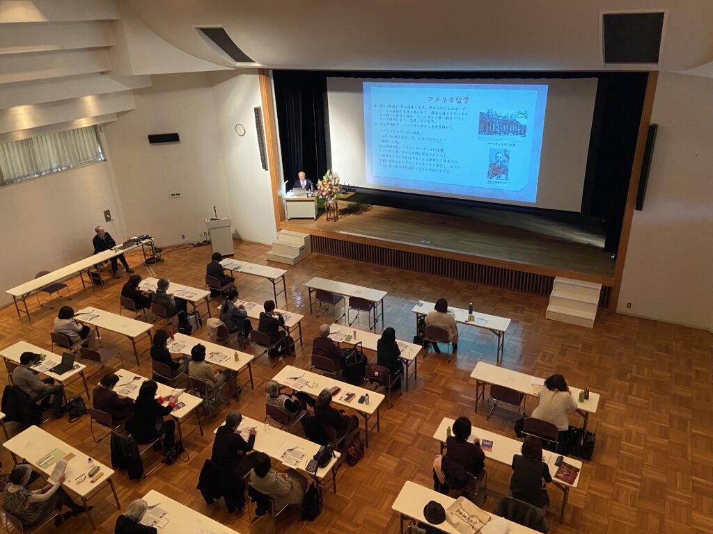 今回は、女子教育に取り組んだ若き日の成瀬先生ついてのお話を伺える貴重な機会となりました。梅花女学校が日本人の信者による素晴らしい学校であったこと、成瀬先生が即戦力と実戦力を備えた人柄であったことなどを伺うことができ、生き生きとしたお姿が目に浮かぶようなご講演でした。参加者の皆様からも「先生のお話を伺ったことで改めて成瀬先生の若い頃の姿を知ることができ、とても面白かった」との感想を多数いただきました。