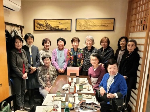 うららかな春の光が差す3月15日、春の親睦会が醤油会席『天忠』にて開催されました。出席者は12名、米寿の方からアラカンまでが集いました。自己紹介から始まり、学科の初期のことや厳しかった先生の懐かしいお話、元気の秘訣など楽しいお話に花が咲きました。