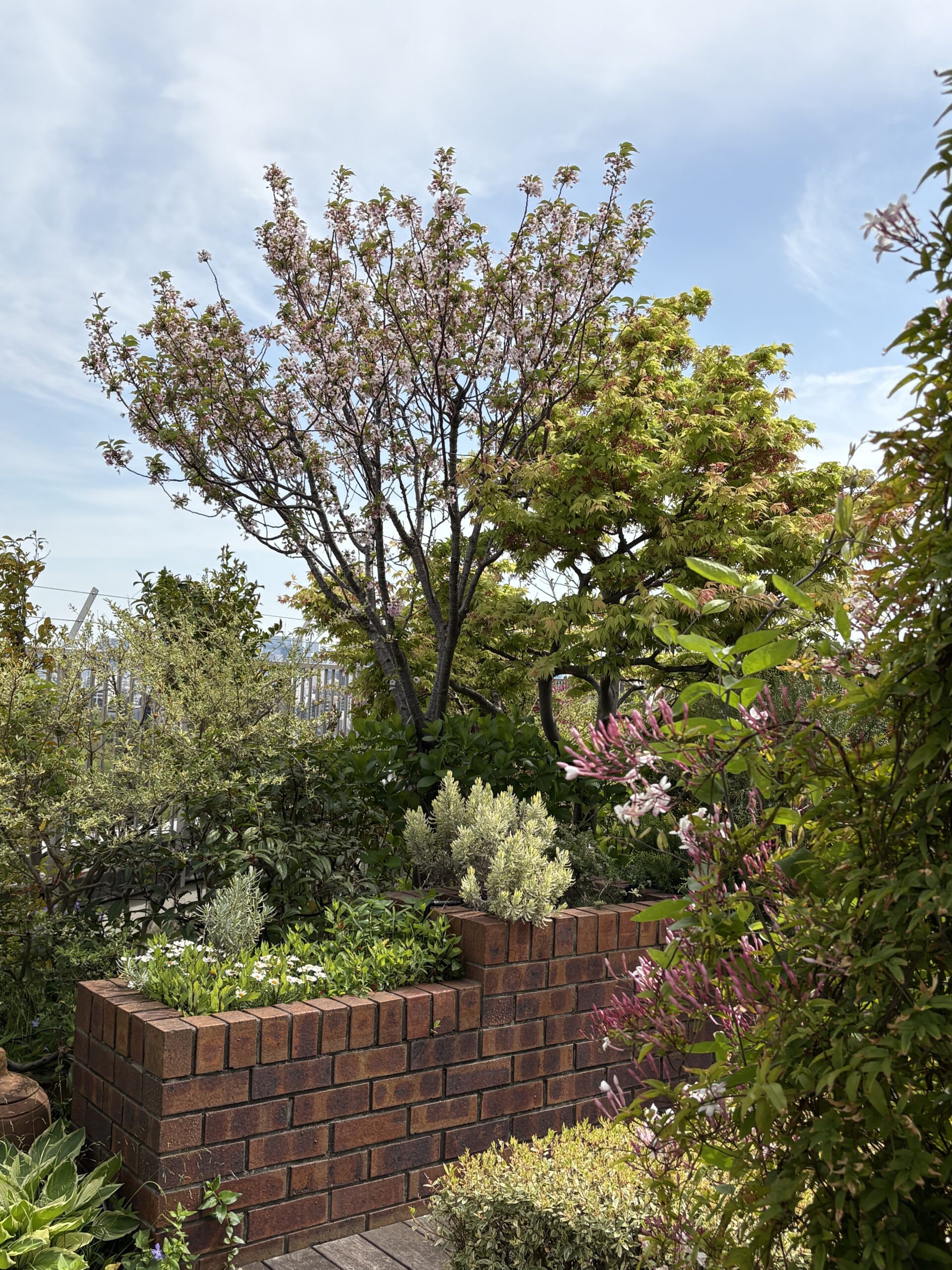 屋上庭園の桜は遅咲き、4月18日のホームカミングデー迄咲き続けると良いのですが、、、。