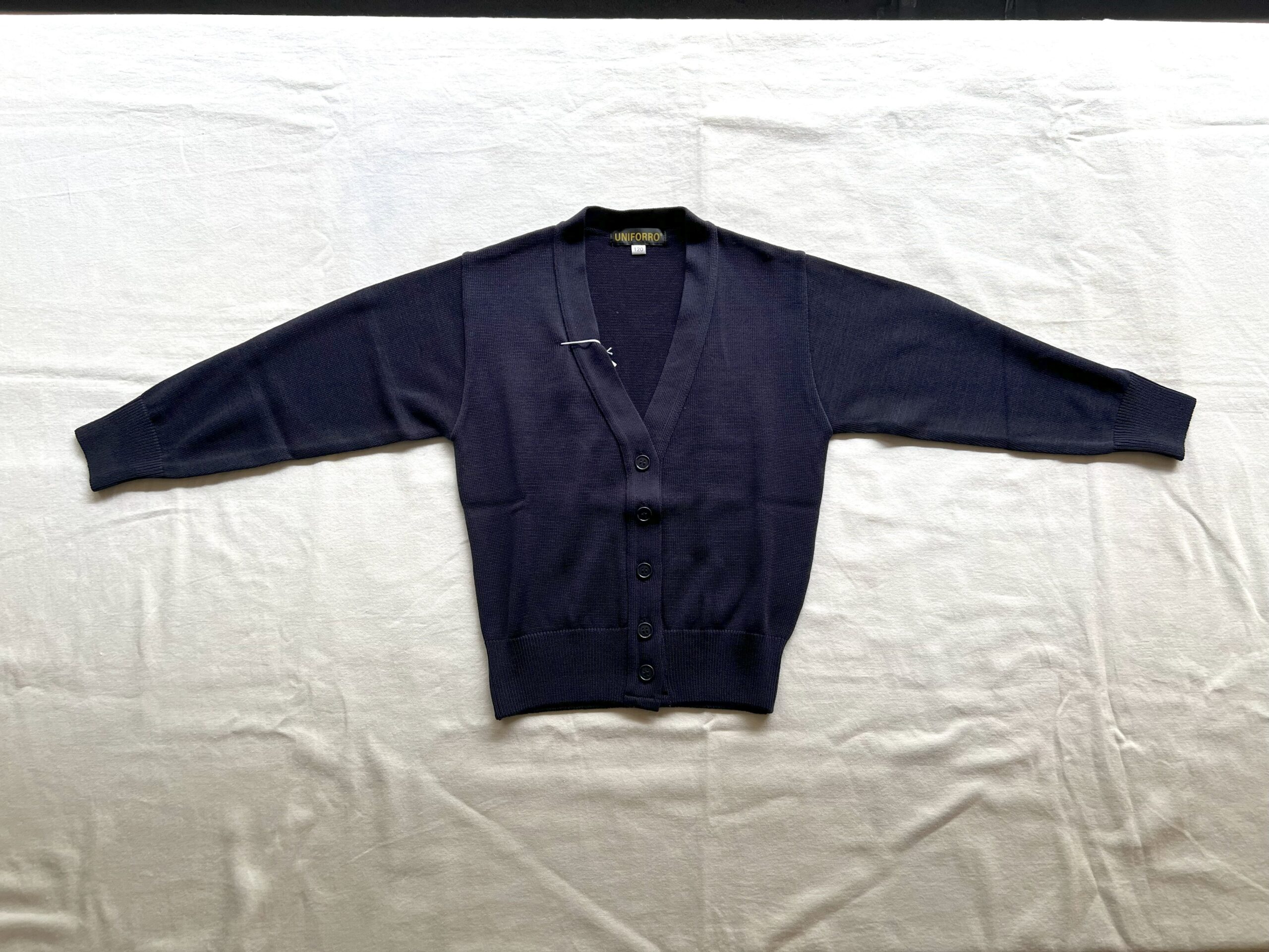 静電気防止、吸汗、速乾性に優れた素材を使った、冷房対策に適した夏用紺色カーディガンです